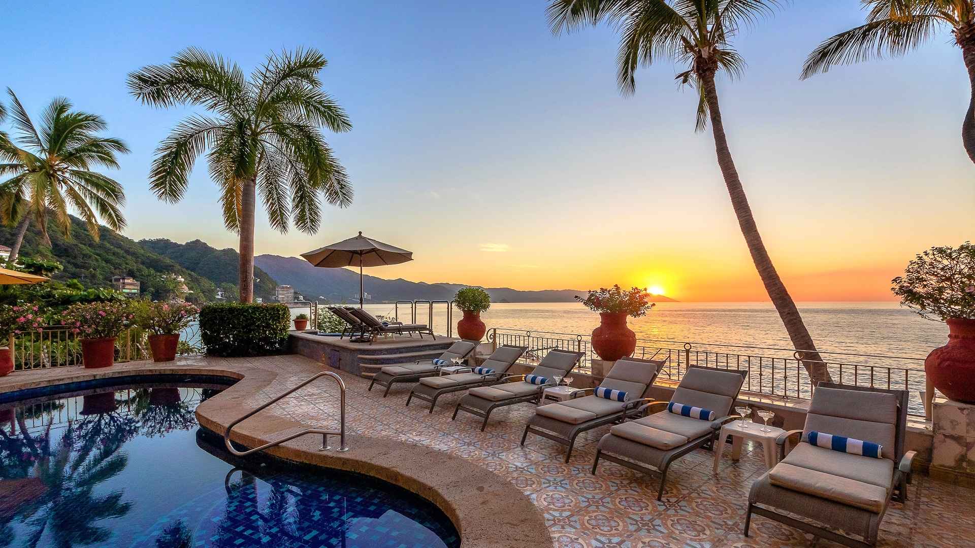 Outside, guests will enjoy spending their time lounging on the Spanish tiled deck, taking dips in the large, heated saltwater salt pool or jacuzzi, and sipping on cocktails while watching the sunset. With a dedicated staff including a houseman, cook, and housekeepers, you will feel pampered and cared for during your entire stay. The cook will prepare 2 delicious meals per day, leaving you to savor the flavors of Mexico.