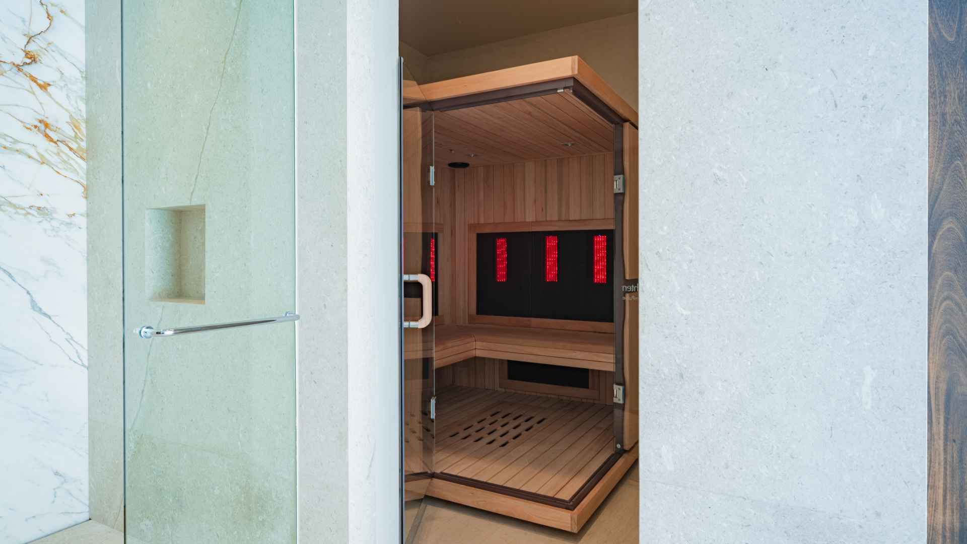 - Gym & Spa with Infrared Sauna, Steam room, massage beds and Cold Plunge