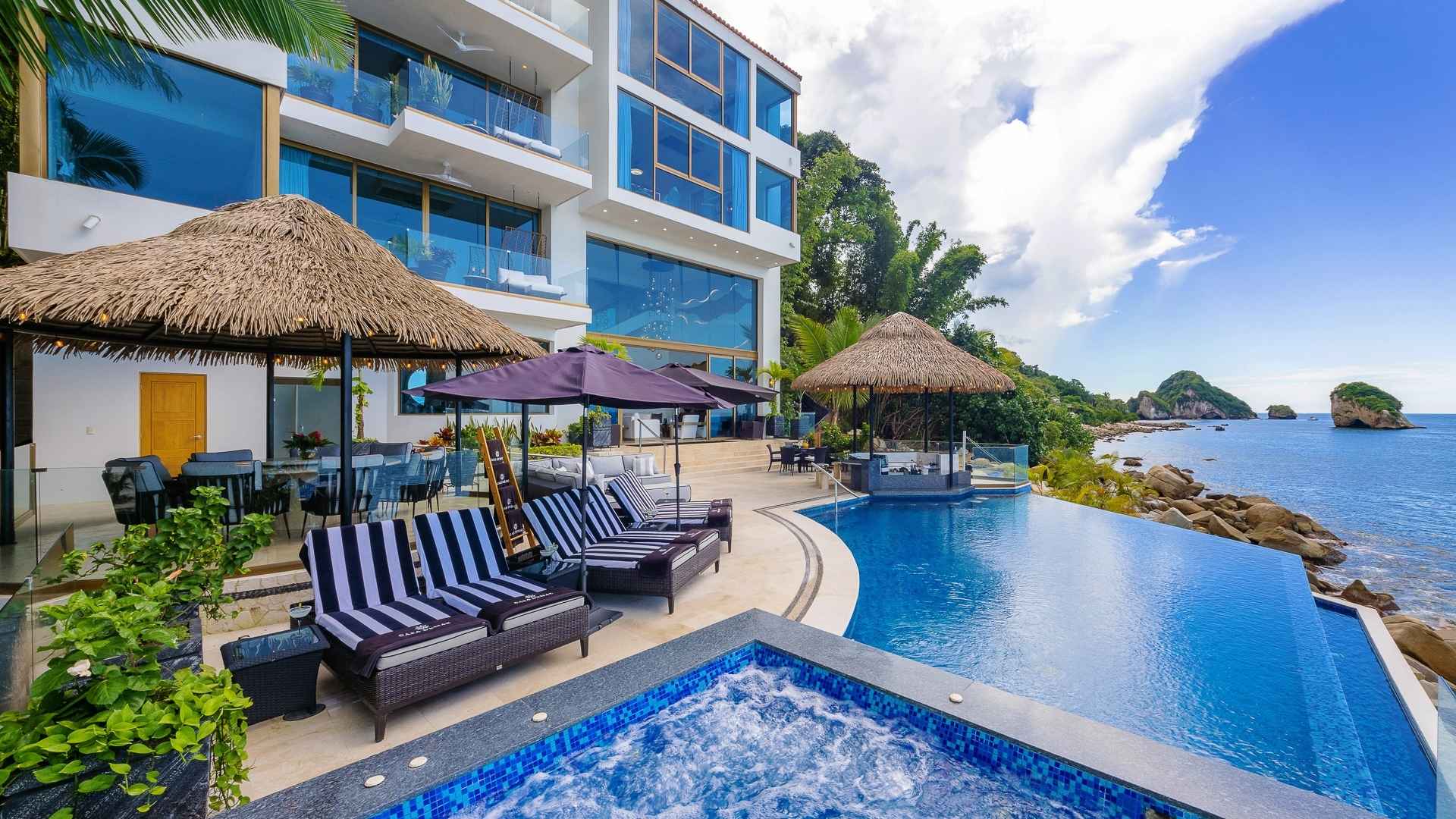 Casa Demae is located in a private gated community just south of Puerto Vallarta near some of the most beautiful beaches in the area.  Guests will enjoy excellent staff services along with numerous amenities that are included.  The famous rock formations of Los Arcos are in direct view of the villa and can easily be kayaked to for snorkeling, or just enjoyed throughout the day from the infinity pool.  Casa Demae has spacious suites, great living areas and is fully equipped for an unforgettable vacation.