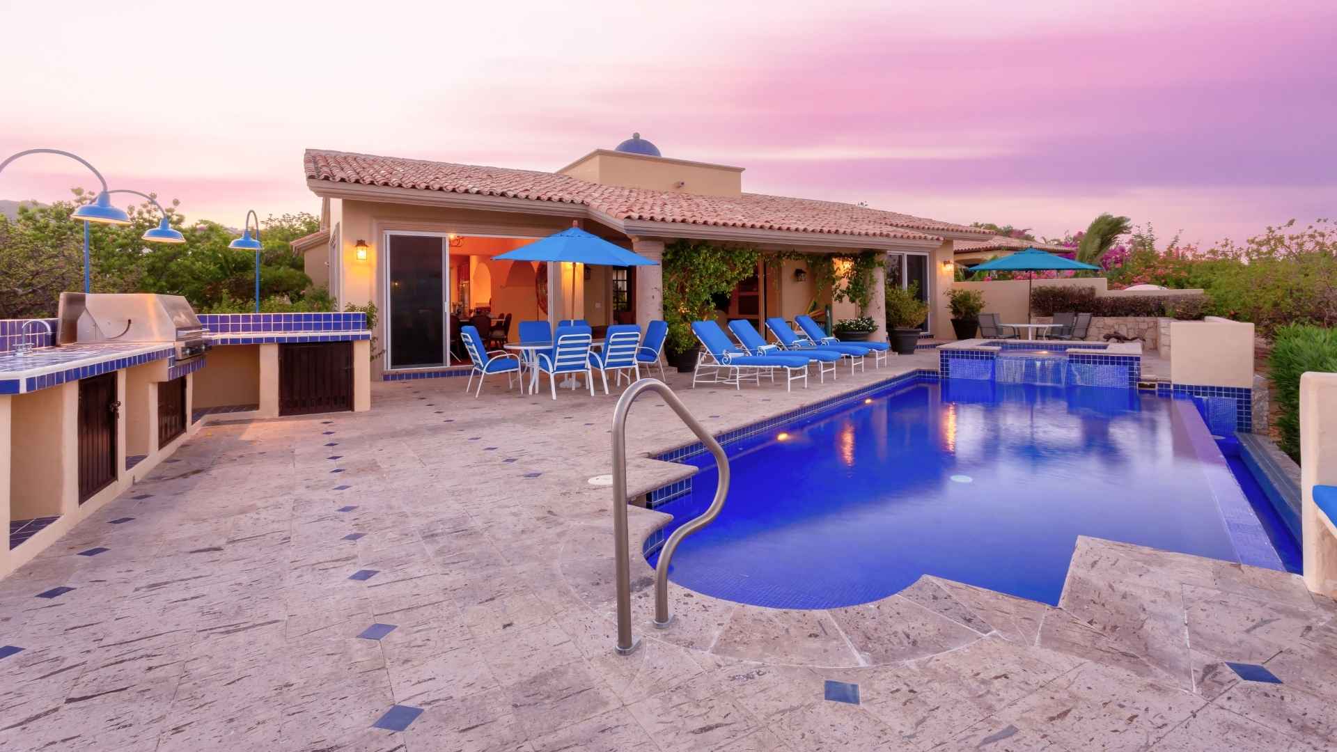 Just a short 10-minute drive from downtown Cabo San Lucas, Casa Stamm grants you the perfect balance between seclusion and convenience. Indulge in the infinity pool that appears to blend seamlessly with the azure horizon, while the 2,800 square-foot outdoor patio invites you to unwind and soak up the sun. Host a memorable gathering with friends and family at the built-in Viking gas grill, or simply relax in the comfortable lounging and al fresco dining areas.