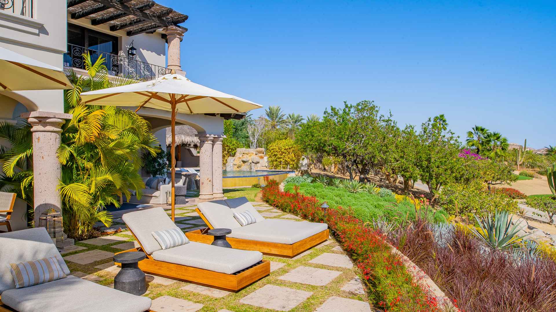 Perched above the coastline in the prestigious Cabo del Sol community, Palmaritos 6 is a beautifully renovated 4-bedroom villa that blends classic Baja charm with modern luxury. With panoramic views of the Pacific Ocean and the golf course, this inviting retreat is perfect for families or groups of up to 10 guests. Whether you're lounging by the infinity pool, sipping cocktails in the palapa, or soaking in the ocean-facing jacuzzi, every moment here feels elevated and serene.