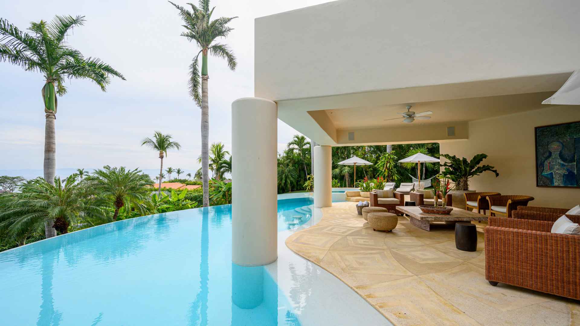 Located in Punta Mita’s exclusive Lagos del Mar development, Villa Alamanda is an exquisite 9,500 sq ft private villa on a sprawling half-acre estate. From its grand entranceway to its spectacular grounds, this villa is characterized by its commitment to luxury and comfort. Lounge by the 85-foot infinity pool, relax in the hot tub, and enjoy spectacular views of the ocean, golf course, and Puerto Vallarta from the comfort of your palatial private deck. The villa’s lush landscape includes stunning tropical gardens that only add to the natural beauty of this unforgettable property.