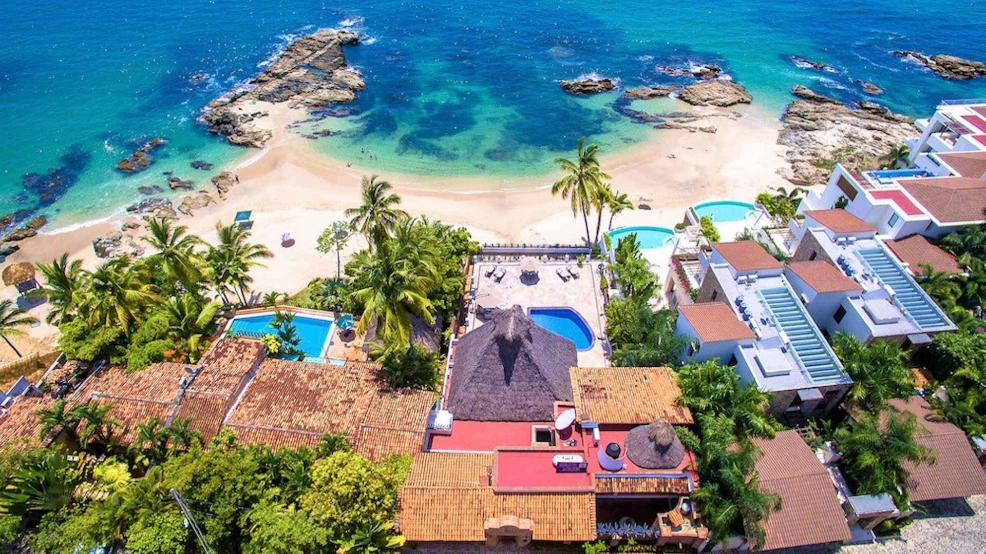 Outside Villa Verde, guests will enjoy the large, heated pool and terrace where you can relax while listening to the waves. When you are ready to explore, step directly from the villa right onto a quiet, sandy beach – a private oasis for you to enjoy or travel 5 minutes (by taxi) to downtown Puerto Vallarta to enjoy the many restaurants and activities the area has to offer.